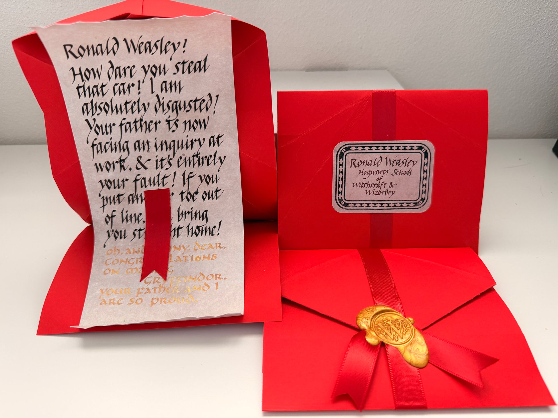 Replica Howler, finished with ribbon and a red wax seal.